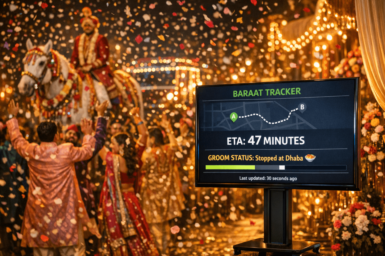 The baraat tracker alone saved my marriage. My in-laws were about to call off the wedding when the groom was 3 hours late. The screen showed he was stuck at a dhaba eating chole bhature. At least we knew.